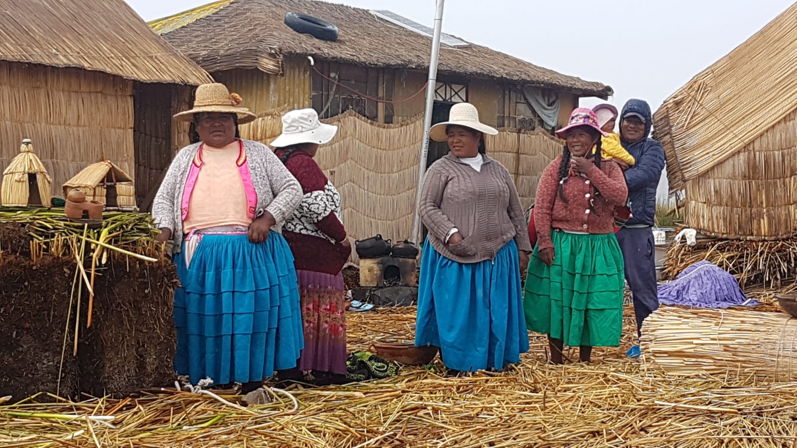 Und doch strahlen diese Menschen Wärme und Freundlichkeit aus. Natürlich werden auch noch einige Souvenirs angeboten, aber ohne dabei aufdringlich zu werden. Es regnet zwar leider noch immer, aber für 10 Soles nehmen wir gerne an einer kleinen Rundfahrt auf einem dieser Schilfboote teil.