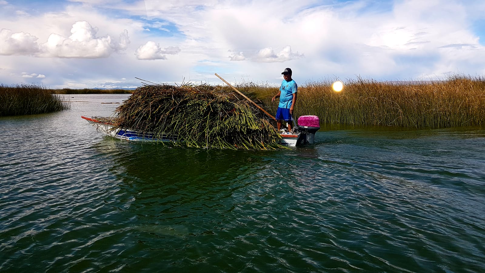 Das Volk der Uros ist vor einigen hundert Jahren vor der Versklavung geflohen und hat angefangen aus Totora, dem Schilf im See, Inseln zu bauen.