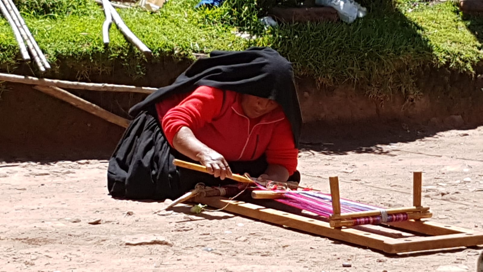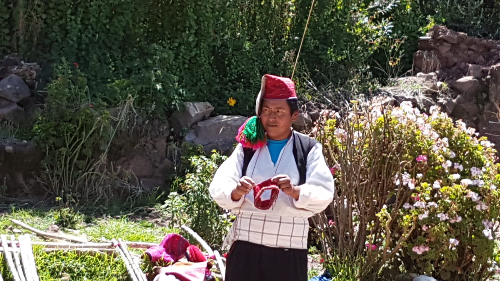 Beim Weben sitzt die Frau so auf dem Boden, dass die Kniee die Erde berühren. Das stellt eine Verbindung zur Göttin Pachamama, der Mutter Erde, dar. Scheidungen gibt es auf Taquile nicht.