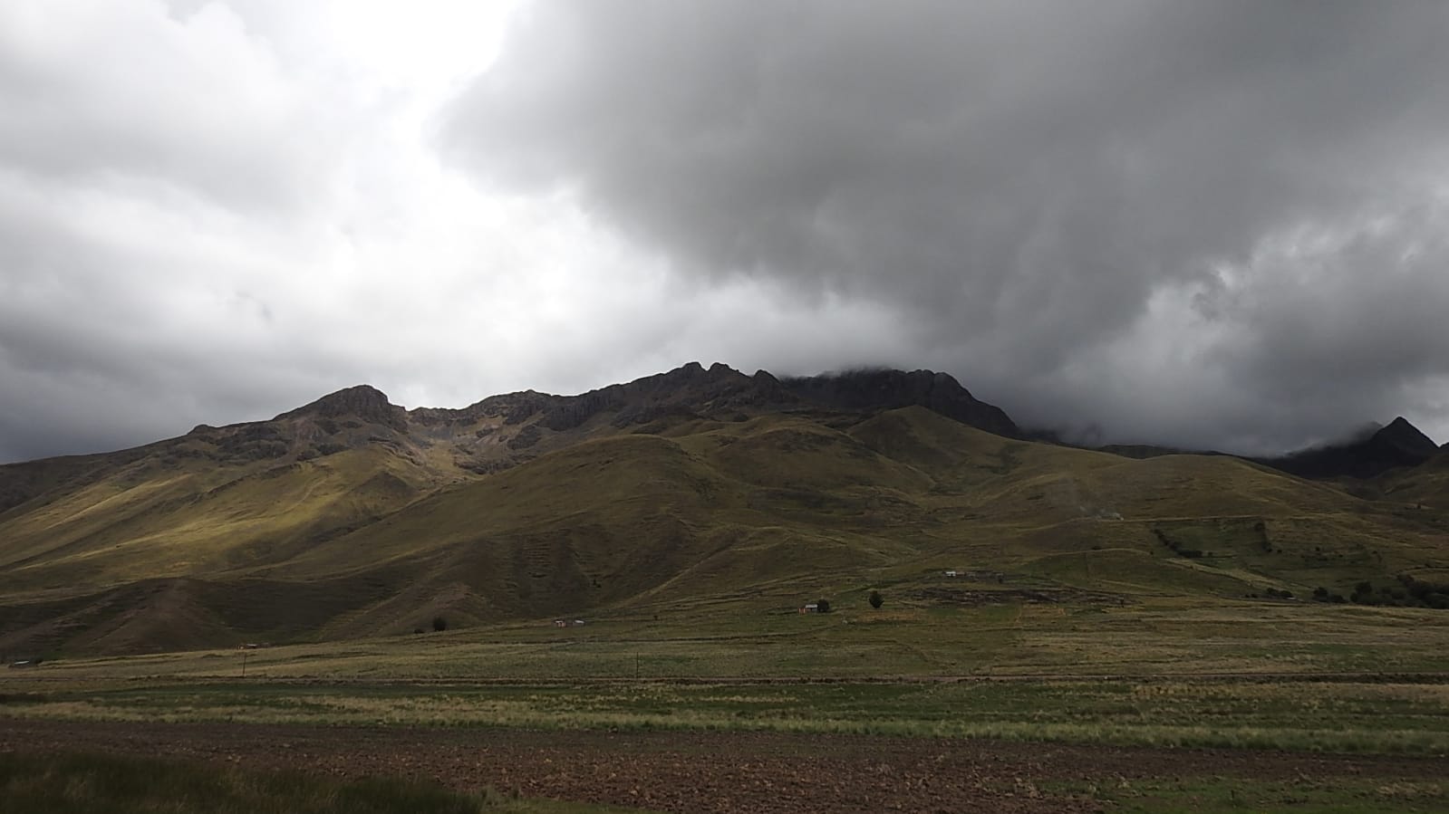 Die weitere Fahrt ist recht unspektakulär. Wir sind zwar immerhin noch auf fast 4000 m, doch hier ist die Landschaft grün und statt der Vikunjas, der Lamas und Alpakas, stehen hier Schafe und Kühe auf der Weide.