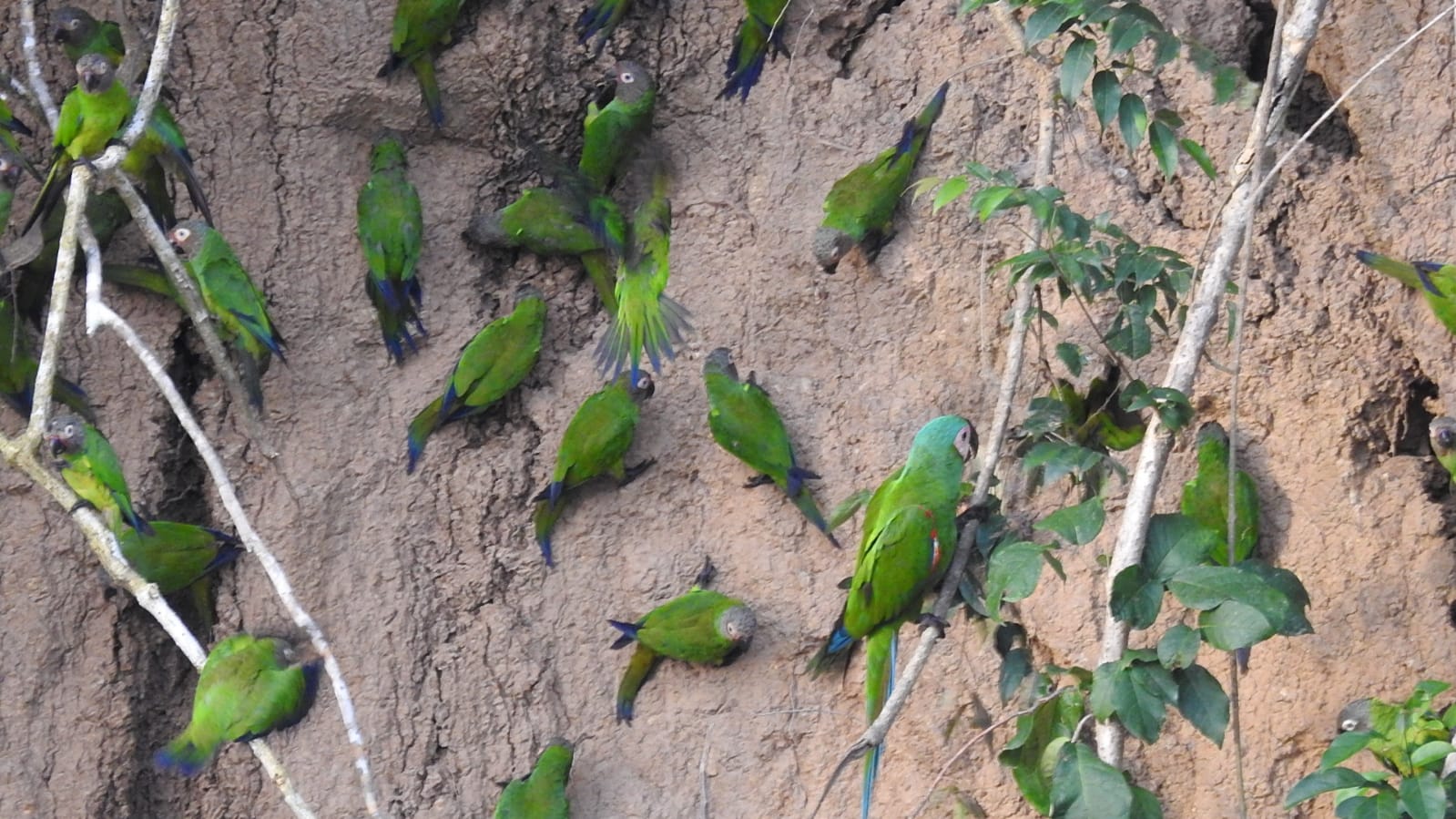 Wie grüne Blätter hängen sie in der Steilwand und streiten um das beste Plätzchen. Hier ist der Treffpunkt für groß und klein und so mancher Teenager-Papagei findet hier den Gefährten für´s Leben. Papageien bleiben sich ein Leben lang treu!