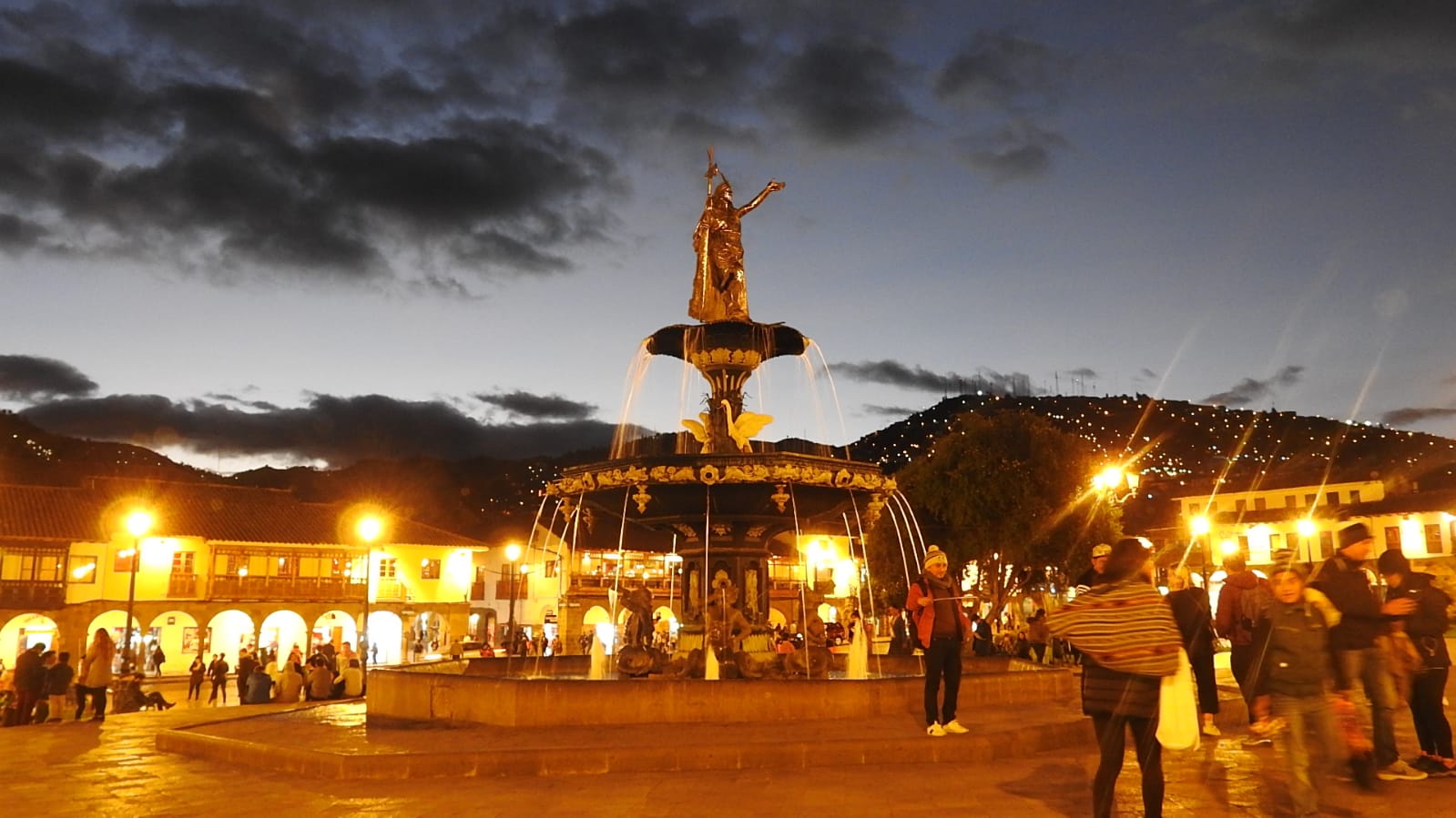 Cusco liegt in einer Talsenke und an den bebauten Hügeln leuchten tausend kleine blaue und gelbe Lichter, als wäre dort ein Sternenmeer.