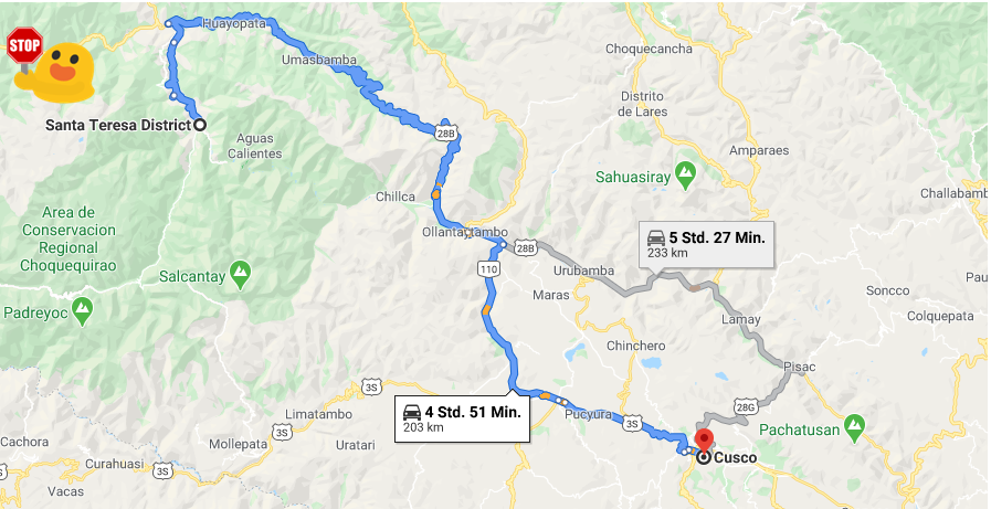 Wir überqueren nochmal den Abra Malaga Pass über fast 5000 m, lassen Ollantaytambo diesmal leider wieder unbeachtet hinter uns und setzen unsere Fahrt zielstrebig fort. Kurz nach Ollantaytambo biegen wir rechts ab auf die Straße 110. Eine gut ausgebaute, schöne Straße die zwischen hohen Felswänden durch führt. Jetzt geht das schon wieder los. Es liegt massig Zeug auf der Straße, teils richtige Felsblöcke. Aber zum Glück sind sie bereits so weit zur Seite geschoben, dass wir passieren können.