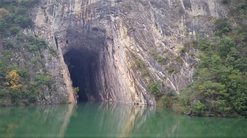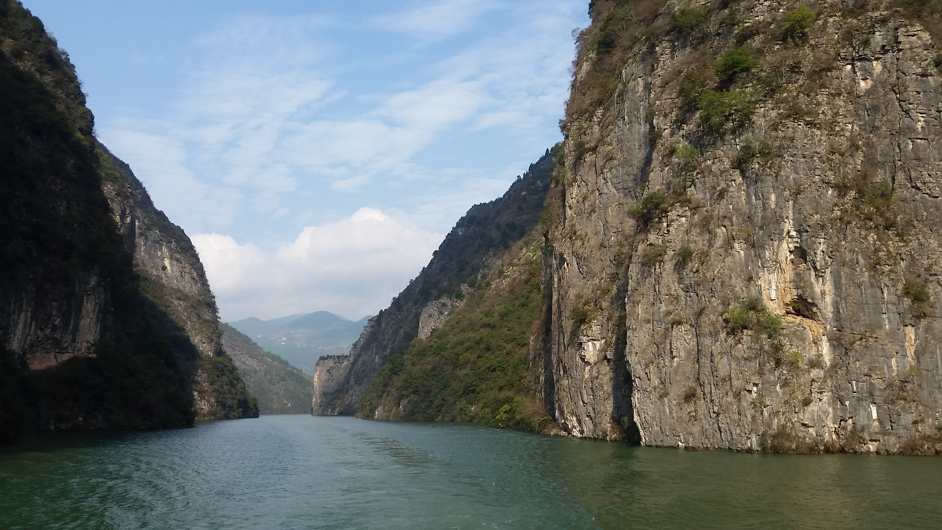 Wir fahren auf dem Shennong zwischen hoch aufragenden Felsen. Auf unserer rechten Seite erscheinen plötzlich Spalten, die sich wir senkrechte Risse durch die Berge ziehen. Das Besondere daran, in den Ritzen befinden sich in schwindelnden Höhen Holzsärge. Bereits vor 2000 Jahren begann das Volk der Ba ihre Toten möglichst sicher und nahe dem Himmel zu bestatten. Wie die Ba die Särge dorthin bringen konnten, ist noch heute ein Rätsel. Immerhin sind die Holzsärge 2 m lang und wiegen mehrere hundert Kilo.