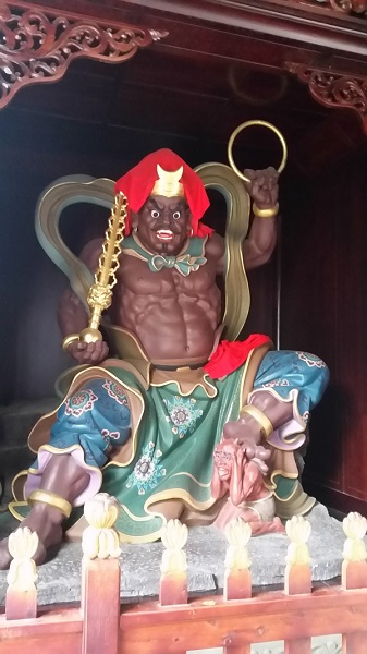 Eine große Schwelle vor dem Höllentor darf von Männern nur mit dem linken Fuss zuerst überschritten werden, sonst wird er im nächsten Leben als Frau geboren. Für Frauen gilt das Gegenteil. Hier sitz auch der Herr der Unterwelt mit seinen 10 Kämpfern und 4 Richtern. Er entscheidet über Leben und Tod.In einer weiteren Halle sind die Qualen der Hölle in Form von folternden Figuren dargestellt.