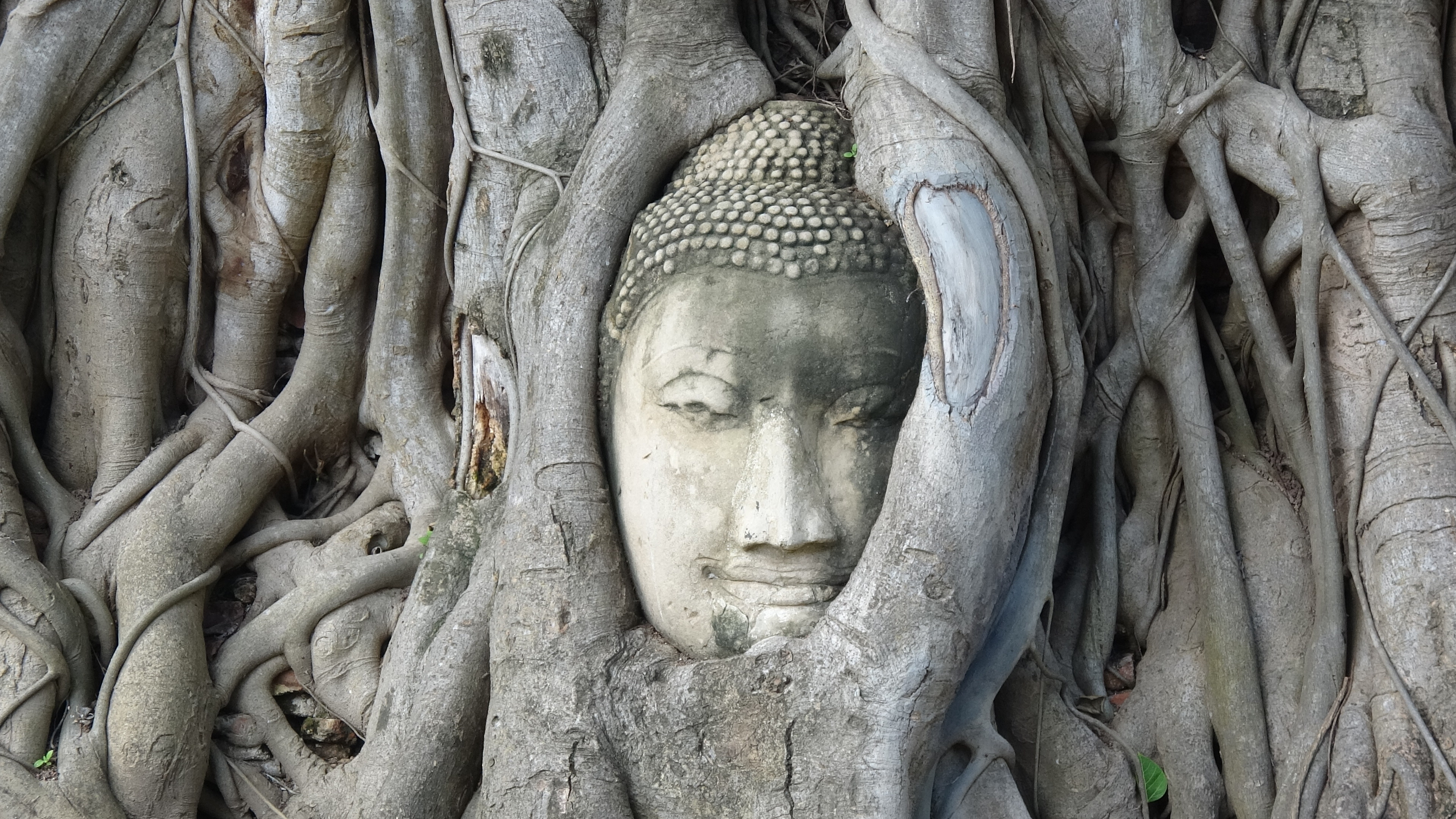 Als die Burmesen die Stadt stürmten, zerstörten sie auch die heiligen Buddha-Statuen und schlugen ihnen die Köpfe ab. Als Gläubige Buddhisten den Steinkopf eines wertvollen Buddhas fanden, vergruben sie ihn kurzerhand in der Nähe des Tempels. Doch Mutter Erde hatte anderes mit ihm vor. Über die Jahrhunderte hinweg wuchs genau an dieser Stelle ein Bayanbaum. Seine Wurzeln schoben den Kopf nach oben und umschliessen ihn schützend. So konnte er wieder "das Licht der Welt erblicken" und wird heute von Buddhisten aus aller Welt als heilig verehrt.