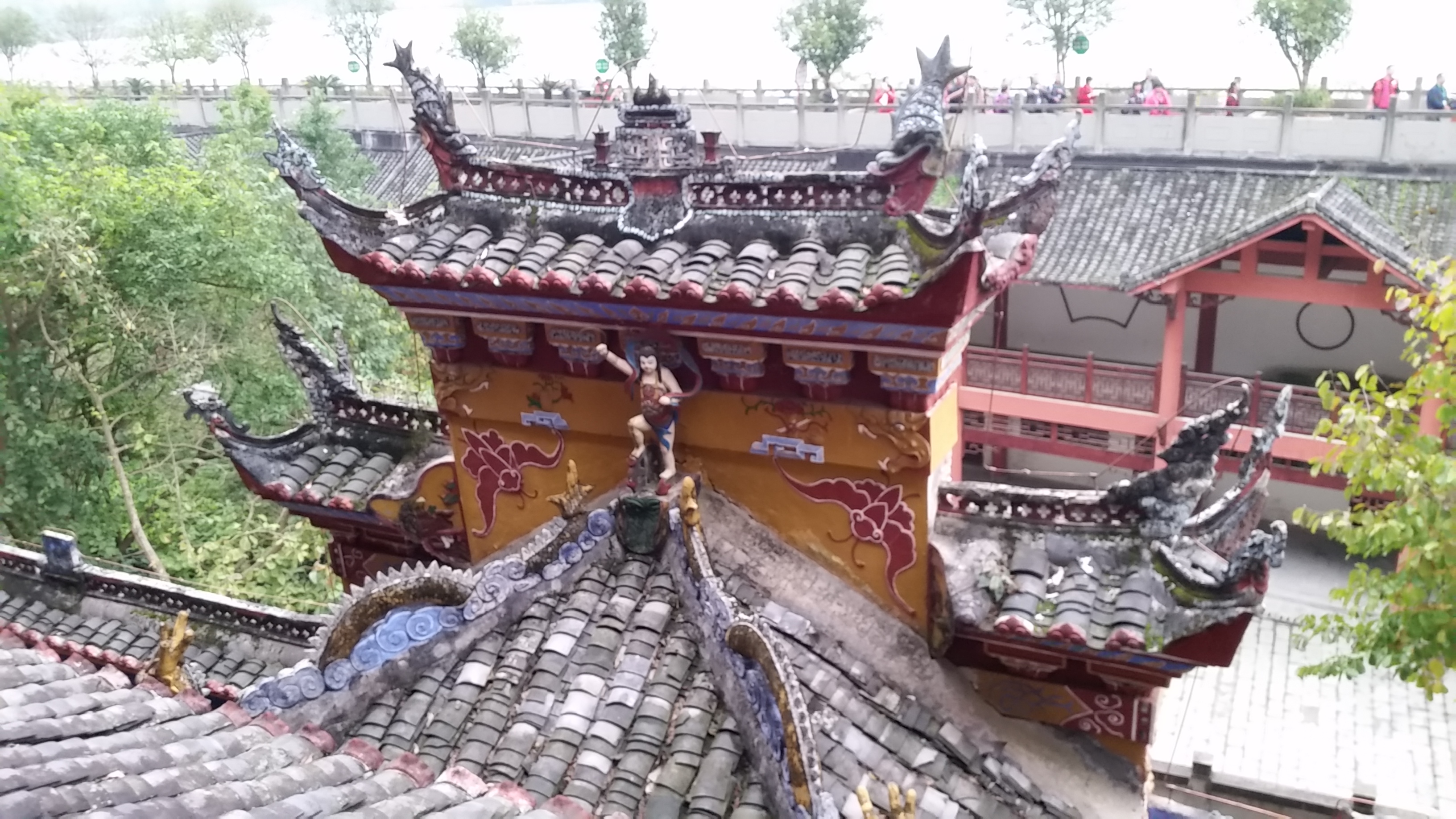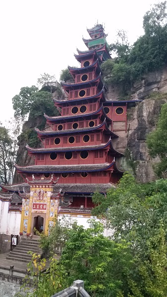 Due to the damming of the 3 Gorges Dam, only a part would be visible above the top of the Red Pagoda. To prevent this, a special dam was built. The former entrance to the pagoda is now under water and the pagoda can only be reached via a bridge.