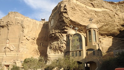 Just a little further on at the foot of the Muqattam hill we find the Coptic cave church complex of St. Samaán, St. Simon the shoemaker. The massif was already used by the pharaohs as a quarry for quartzite.