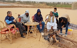 At a desert lake near Dachla, we sit comfortably for the last time around the campfire.